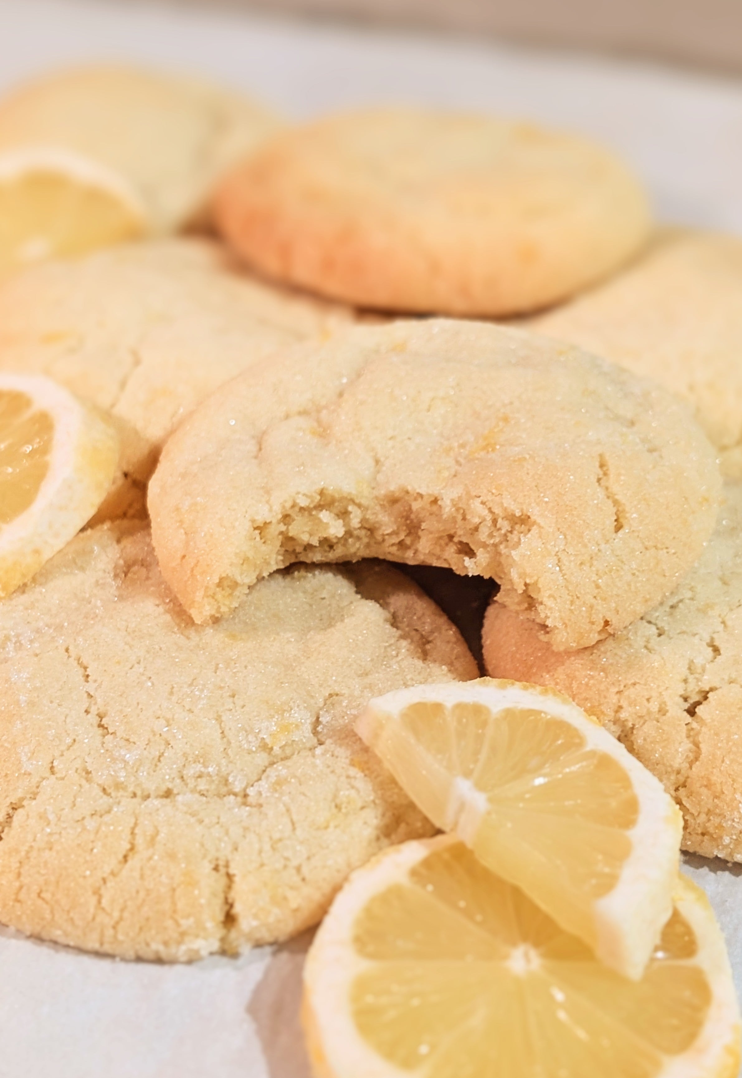 Built on a soft, buttery sugar cookie base infused with fresh lemon zest for a bright, natural citrus flavor. The dough is rolled in lemon-scented sugar before baking, creating a lightly crisp exterior that gives way to a tender, pillowy center. Subtly sweet with a refreshing lemon lift, these cookies offer a delicate balance of softness, chew, and vibrant citrus aroma in every bite.
