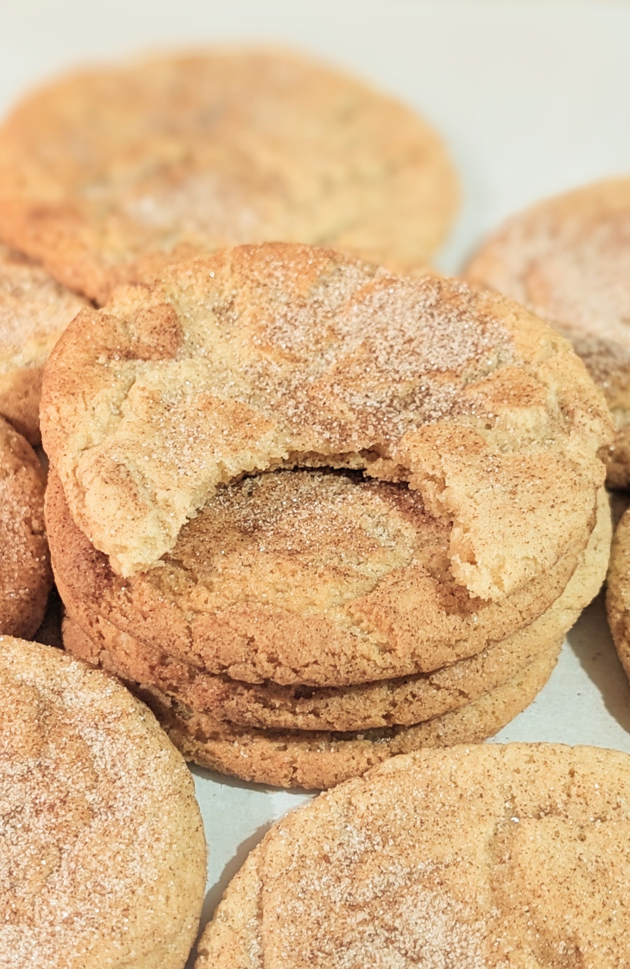 Built on a soft, buttery cookie base infused with pure vanilla and a hint of warm cream of tartar for that classic tangy lift. Rolled generously in a cinnamon-sugar blend that caramelizes as it bakes, creating a crackly golden crust with a warm, aromatic spice. Each cookie emerges perfectly tender in the center with delicately crisp edges, releasing notes of cinnamon and butter in every bite.