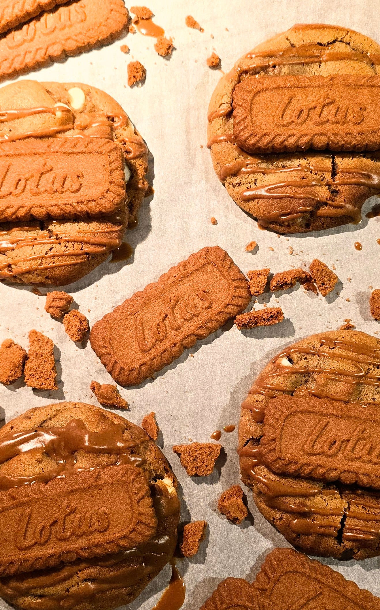 A thick, soft chocolate cookie with a warm, gooey caramel center, finished with a light sprinkle of flaky sea salt. Rich chocolate, smooth caramel, and the perfect sweet-salty balance in every bite.
