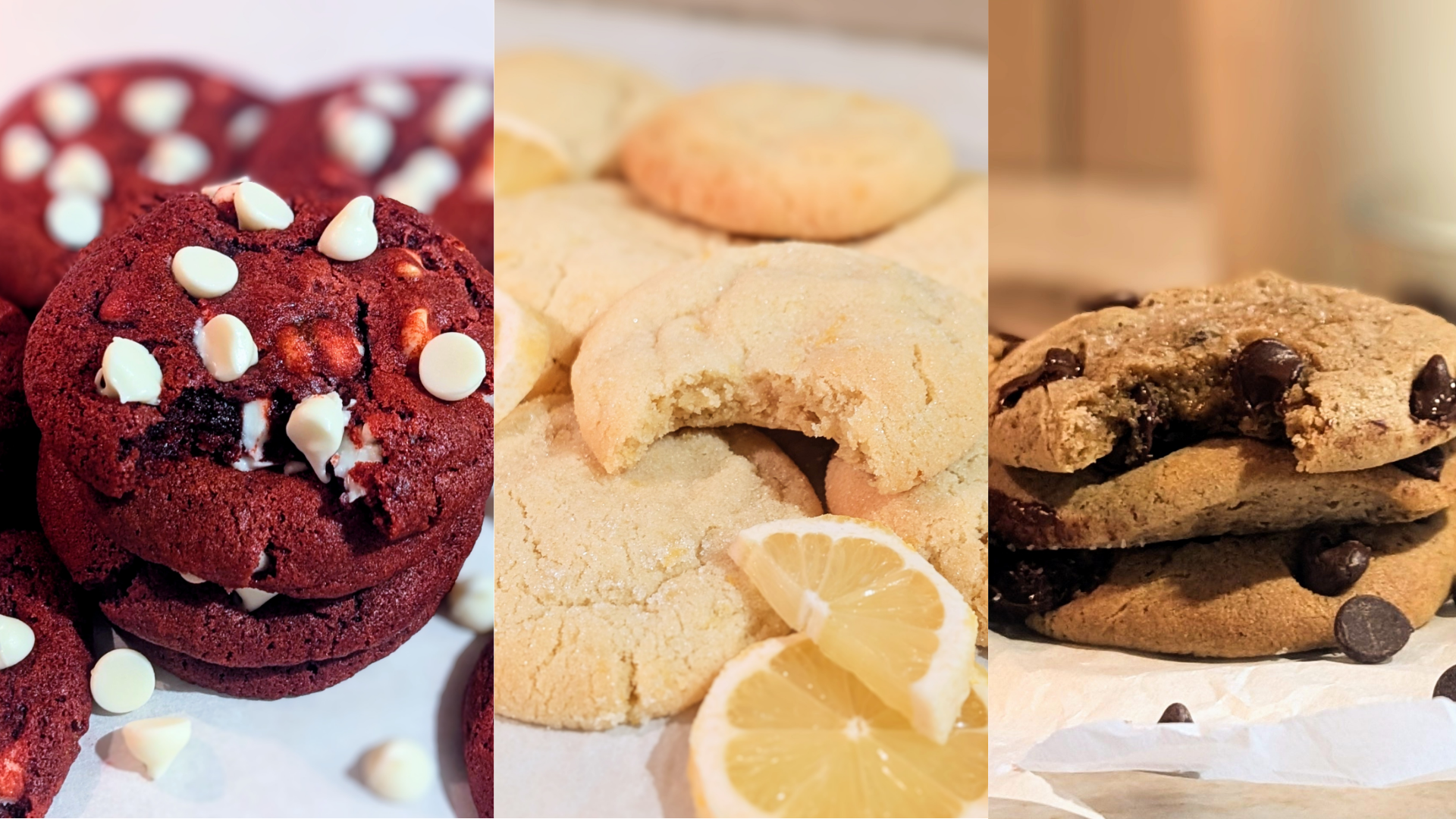 Built on a soft, cocoa-infused red velvet base, crafted with a blend of brown sugar, vanilla, and a touch of Dutch-process cocoa for depth. Each cookie features a smooth, tender interior with subtle chocolate notes, then finished with creamy white chocolate pieces folded throughout the dough. Baked until just set for a velvety, melt-in-your-mouth texture, these cookies balance rich flavor, striking color, and pockets of sweet white chocolate in every bite.